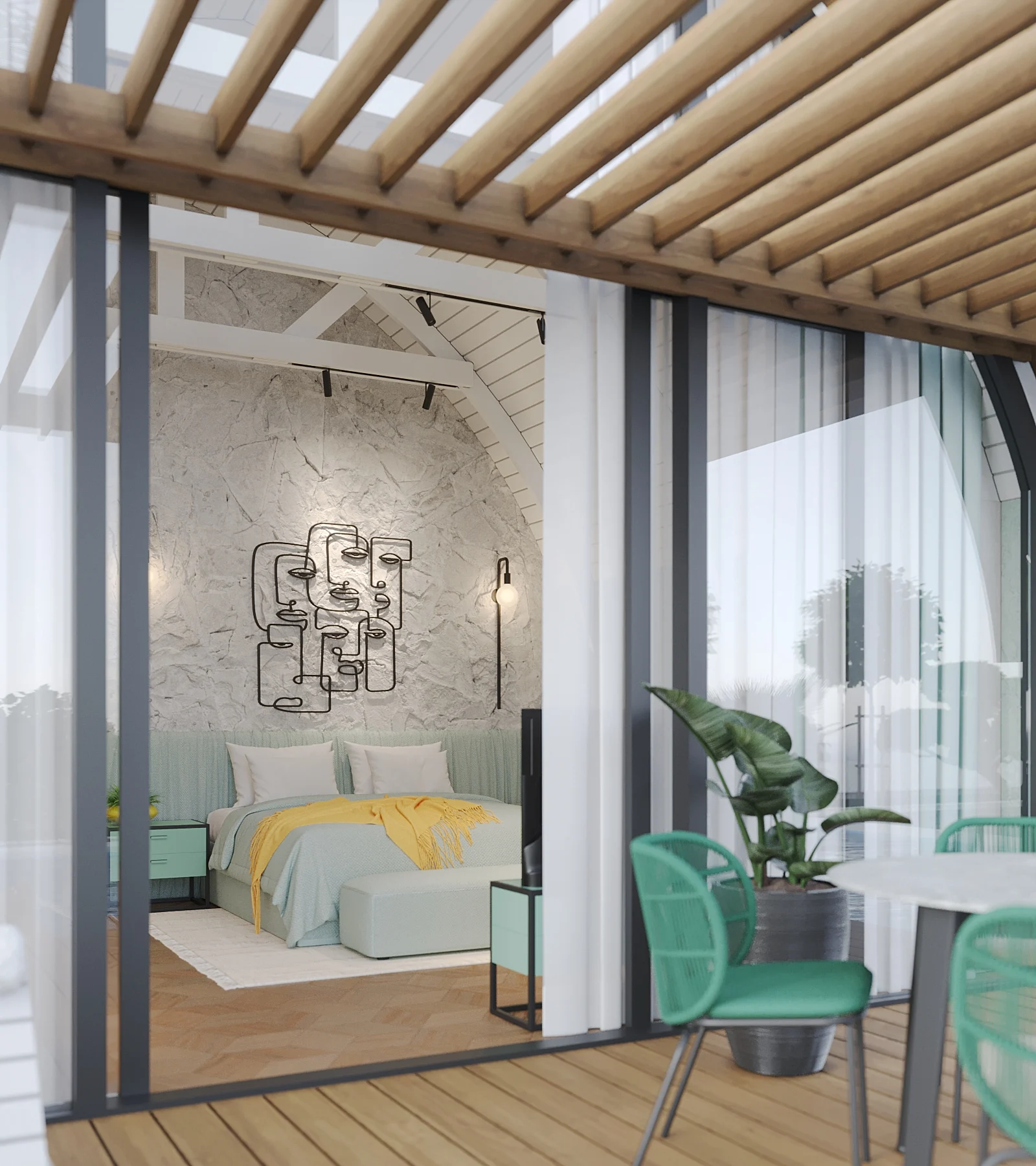 54 m² sahəyə malik geniş bungalovlar 25 m²-lik özəl verandaya sahibdir — bu məkan səhər meditasiya etmək, gündəlik yazmaq və ya sadəcə Xəzər səması altında istirahət üçün idealdır.